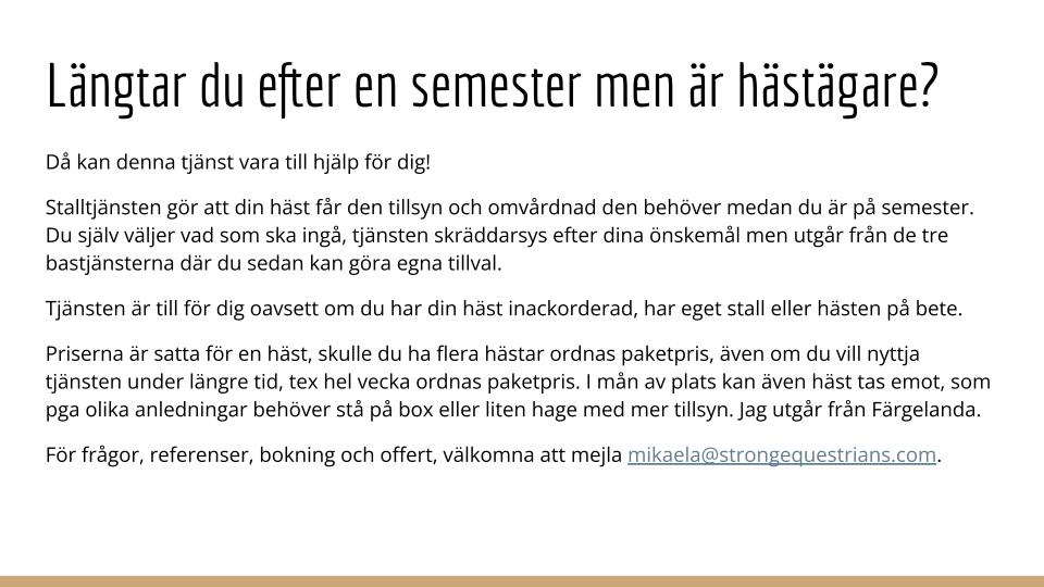 Nyhet! Semestertider och du har häst? Kolla in vår tjänst ”Stall tjänst”